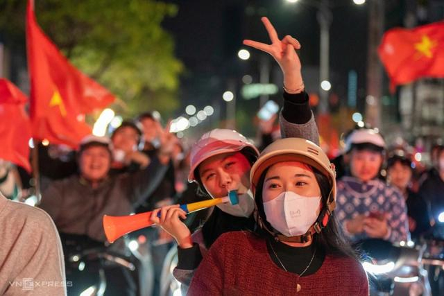 尽管河内气温降至摄氏8-10度,但仍有许多人涌上街头,挥舞着旗帜,欢呼庆祝越南U23队的胜利。通往金莲隧道的数百米长的道路,整条路都被车灯和旗帜的红色光芒照亮。街道上回荡着震耳欲聋的欢呼声。越南队在与韩国队的激烈点球大战中获胜,球迷们欢呼雀跃。